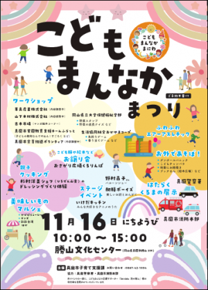 真庭市のこども・子育て世代、地域のみんなが、こどもをまんなかに笑顔になれるよう、地域全体でこどもや子育てを応援しはぐくむ機運を醸成することを目的としたイベントです。