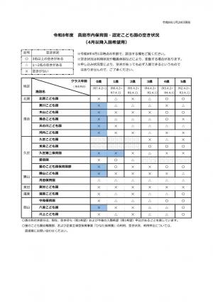 「R8 真庭市内保育園・認定こども園の空き状況 R8.1.29現在 [PDFファイル/81KB]」をご覧ください。