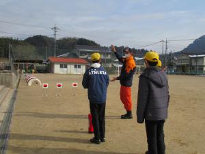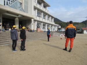 2月1日に避難訓練をしました。真庭消防署から指導に来てくださったので、消化器の使用や煙体験もしました。「お・は・し・も」を守って速やかに避難ができました。