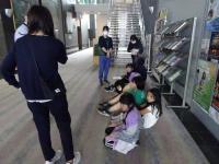 学校を出発し、バスに乗りました。バスの中では「みんなでしりとりをしよう」という4年生の提案で、先生達も一緒にしりとりをしながらエスパスに向かいました。