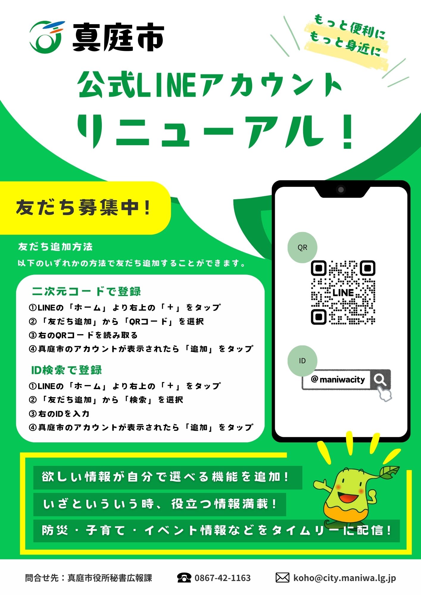 これまで「真庭市防災情報配信サービス」の配信として運用していた真庭市の公式LINEアカウントを、令和7年2月3日(月曜日)にリニューアルしました。